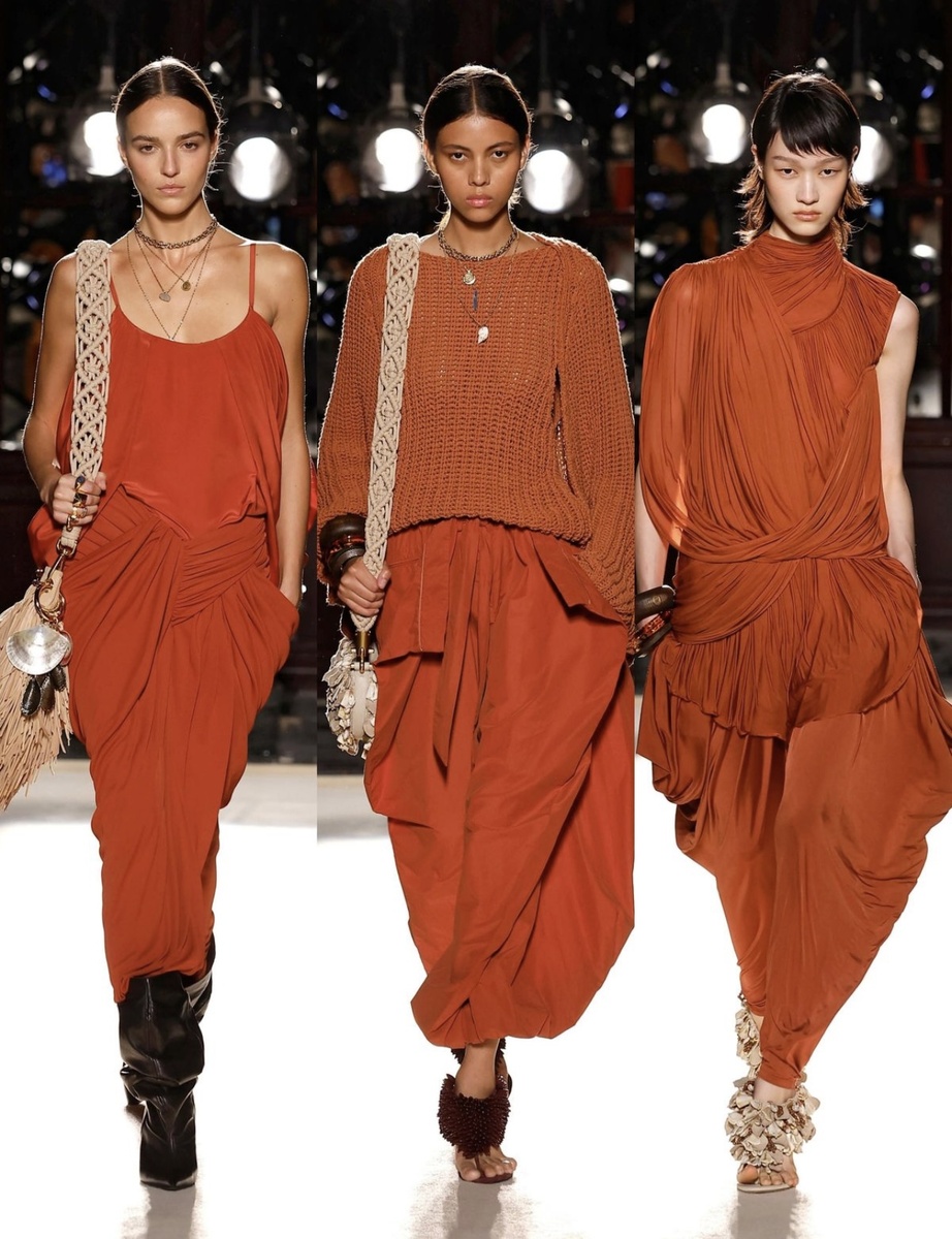 Сафари-люкс берет африканские мотивы (природные оттенки, крупные деревянные аксессуары, грубые текстуры), но очищает их от сувенирности. Никакой вышивки «а-ля сафари» и псевдоэтнических принтов. Только форма, цвет и материал, отсылающие к духу приключений, но скроенные по лекалам высокой моды.