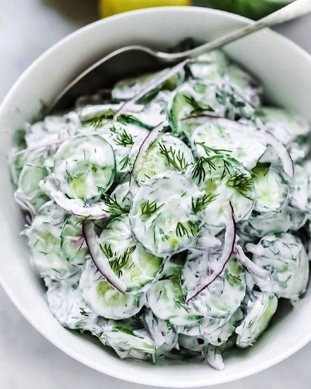 5. Полейте заправкой огурцы и перемешайте.