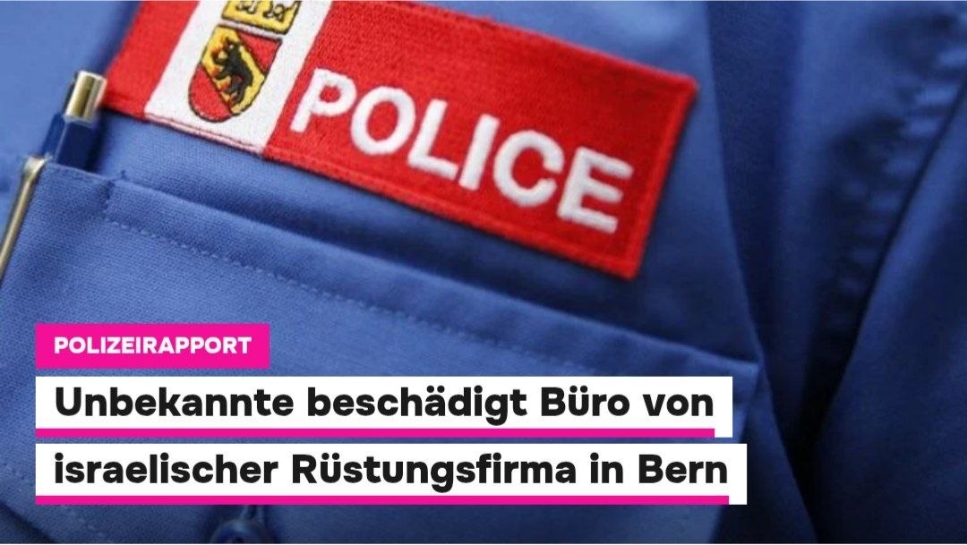 Кантональная полиция Берна подтвердила информацию агентству Keystone-SDA, ссылаясь на сообщение газеты «Le Courrier». По предварительным данным, вскоре после 20:00 неизвестная женщина проникла в офисные помещения компании. Там она нанесла материальный ущерб на десятки тысяч франков. Как сообщила полиция, были повреждены входная дверь и имущество внутри офиса. Пожара не произошло, пострадавших нет. Помимо полиции, на место выезжала и пожарная служба. В интернете распространяется видео, предположительно связанное с инцидентом. На нём видно, как человек сначала включает пожарную сигнализацию, а затем несколькими ударами молотка разбивает стеклянную дверь с надписью «Elbit Systems Switzerland». На момент происшествия, по данным компании, сотрудников в здании не было. Компания подала заявление в полицию, ведётся расследование. Elbit Systems поставляет, в частности, беспилотники для швейцарской армии. Пропалестинские активисты резко критикуют это сотрудничество и уже не раз выражали про