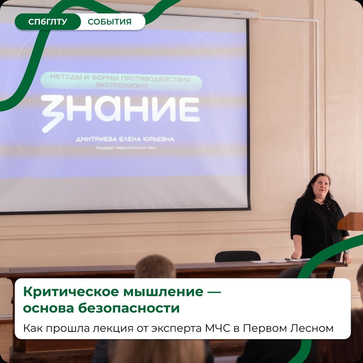 23 марта в нашем университете состоялась лекция на тему «Методы и формы противодействия экстремизму». Спикером выступила Елена Юрьевна Дмитриева, доцент Санкт-Петербургского университета Государственной противопожарной службы МЧС России им. генерала армии Е.Н. Зиничева. 💡 В современном мире, где достоверная и актуальная информация становится одной из главных ценностей, крайне важно понимать, как защитить себя и общество от деструктивных идеологий. Лекция была посвящена: ▸ методам распознавания экстремистских проявлений ▸ формам противодействия экстремизму ▸ алгоритмам действий при столкновении с подозрительной информацией или действиями Благодарим Елену Юрьевну за ценные знания, которые помогут нашим студентам критически мыслить и формировать безопасное информационное пространство 🤝 👉 Подробнее — на сайте СПбГЛТУ #СПбГЛТУ #СПбГЛТУ_события #СПбГЛТУ_Безопасная_среда 👻 МАХ | 📲 ВК | 📝 ДЗЕН