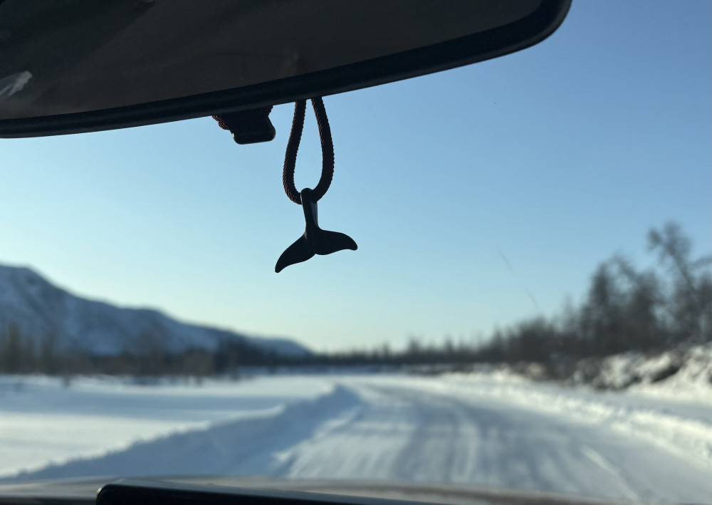 И по маячку можно догадаться, встречи с кем я так ожидаю. Во время поездки по Якутии я целыми днями смотрела на покачивающийся китовый хвостик, который по какой-то случайности оказался подвешен на зеркало нашей машины.