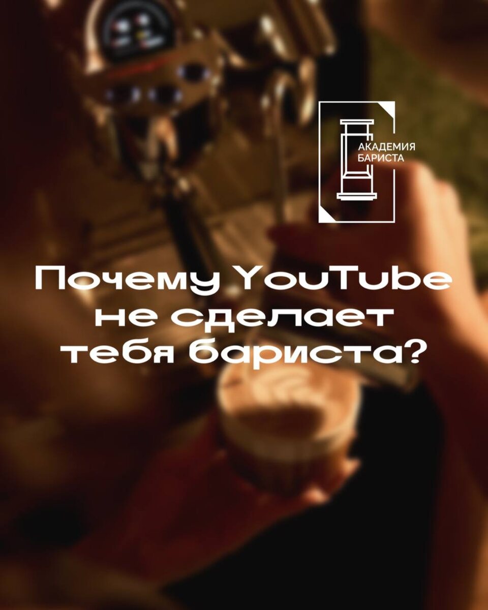 ? YouTube показывает как варить кофе, но не объясняет почему. ◀️Можно повторять рецепты десятки раз, но вкус нестабилен, эспрессо «гуляет», молоко не тянется — и ты не понимаешь, что исправлять. Главная проблема — отсутствие обратной связи. ◀️Никто не скажет, где ошибка и как её исправить. Ты просто повторяешь действия, закрепляя привычки, которые не приносят результата. Настоящий рост начинается там, где есть система: понимание вкуса, логика настройки и работа с ошибками в реальных ситуациях. Тогда ты не просто повторяешь — ты управляешь результатом и создаёшь стабильный кофе каждый раз. YouTube — хороший старт, но не делает профессионала. ◀️Если хочешь действительно прокачать навыки и выйти на уровень бариста, которого выбирают за качество — нужен другой подход. Мы научим тебя всему, что должен знать и уметь настоящий бариста 😎 Записывайся на обучение ➡️ @academiabarista