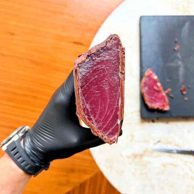Тунец в шоколаде 😱 Блюдо by Josh Niland. Перед подачей шоколад снимут. Тунец лишь выдерживается в нём.
