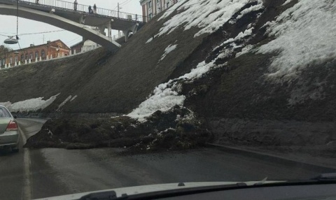 Инцидент произошёл в одном из ключевых транспортных участков города. По предварительной информации, грунт сошёл на проезжую часть, что осложнило движение автомобилей.