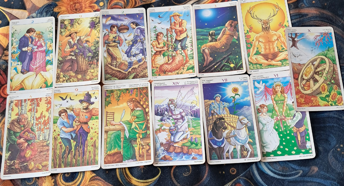 Год с символической аркой: от нежности и одновременно отстранённости (2 Кубков + 9 Пентаклей) через внутренние сомнения (2 Мечей) к осознанному выбору пути (2–3 Жезлов) и в финале — к чистому, солнечному счастью. Важно не бояться пауз и не форсировать: они нужны, чтобы каждый понял свои истинные желания.