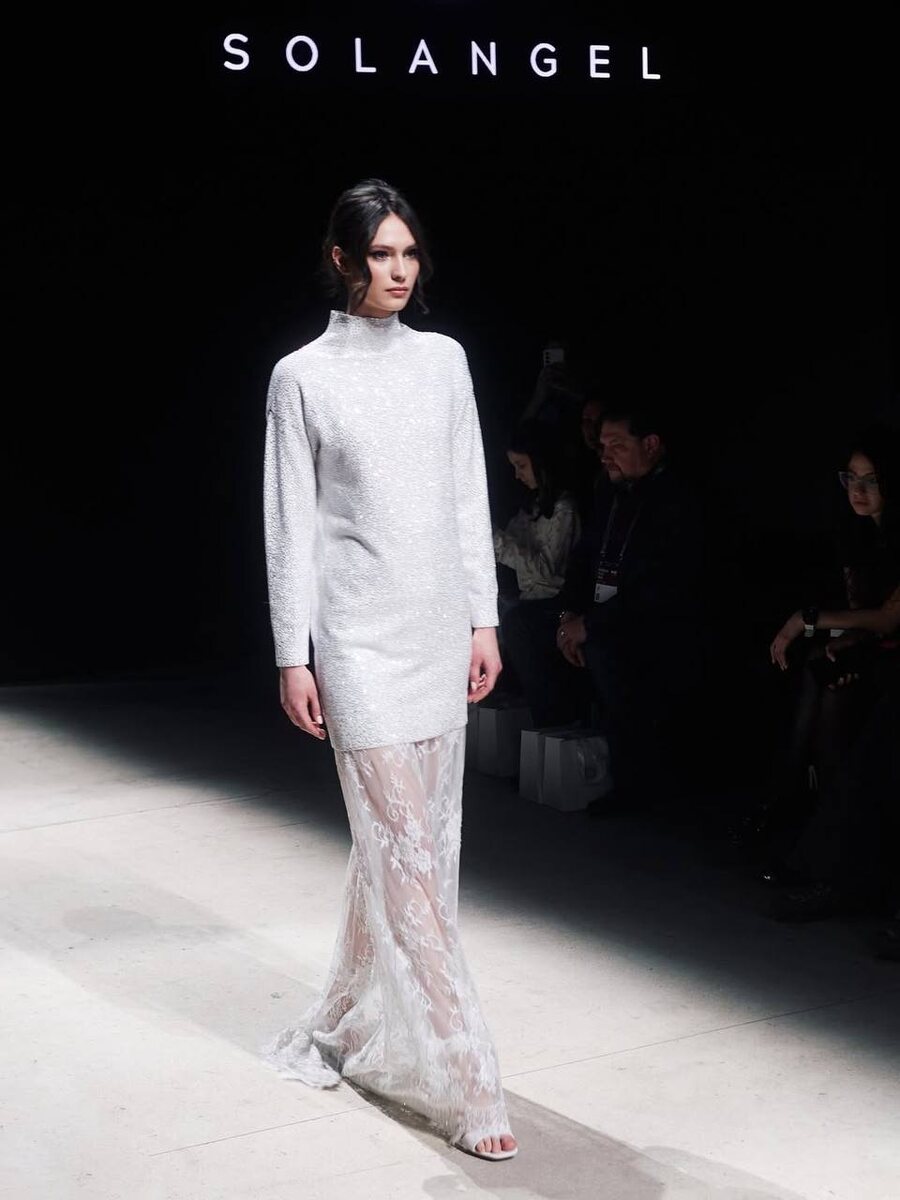 🩶 Изысканная игра фактур и прозрачности - этот образ по-новому раскрывает современную элегантность. Структурный верх контрастирует с полупрозрачной юбкой с тонкой вышивкой, которая оживает в движении, наполняя силуэт лёгкостью и светом. Деликатное кружево добавляет глубину и художественность, а вытянутый силуэт формирует утончённость.
