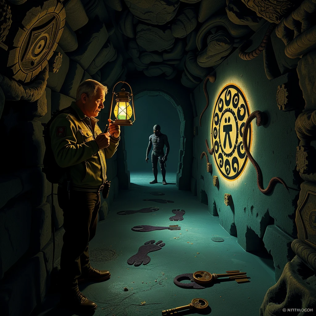 Решив проверить показания, я спустился к водоёму. Тоннель изменился с прошлого раза: стены покрылись слизью, на полу появились следы — не человеческие, а с пятью углублениями, будто кто‑то ходил на коленях. Фонарь выхватывал символы — они шевелились, складываясь в слова на неизвестном языке.