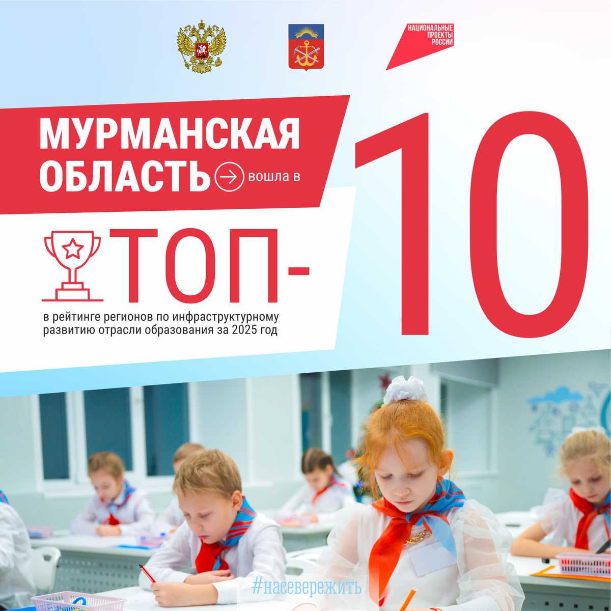 Мурманская область вошла в топ-10 регионов — лидеров России по строительству и капитальному ремонту образовательных организаций, заняв 8 место. Итоговые рейтинги по инфраструктурному развитию за 2025 год озвучил заместитель министра просвещения РФ Андрей Николаев в Москве на программе повышения квалификации для руководителей региональных органов управления образованием. Напомним, в рамках реализации нацпроектов и губернаторского плана «На Севере — жить!» в 2025 году в Мурманской области капитально отремонтировано 14 школ, 2 детских сада и 3 колледжа. Также открылся Губернаторский лицей.