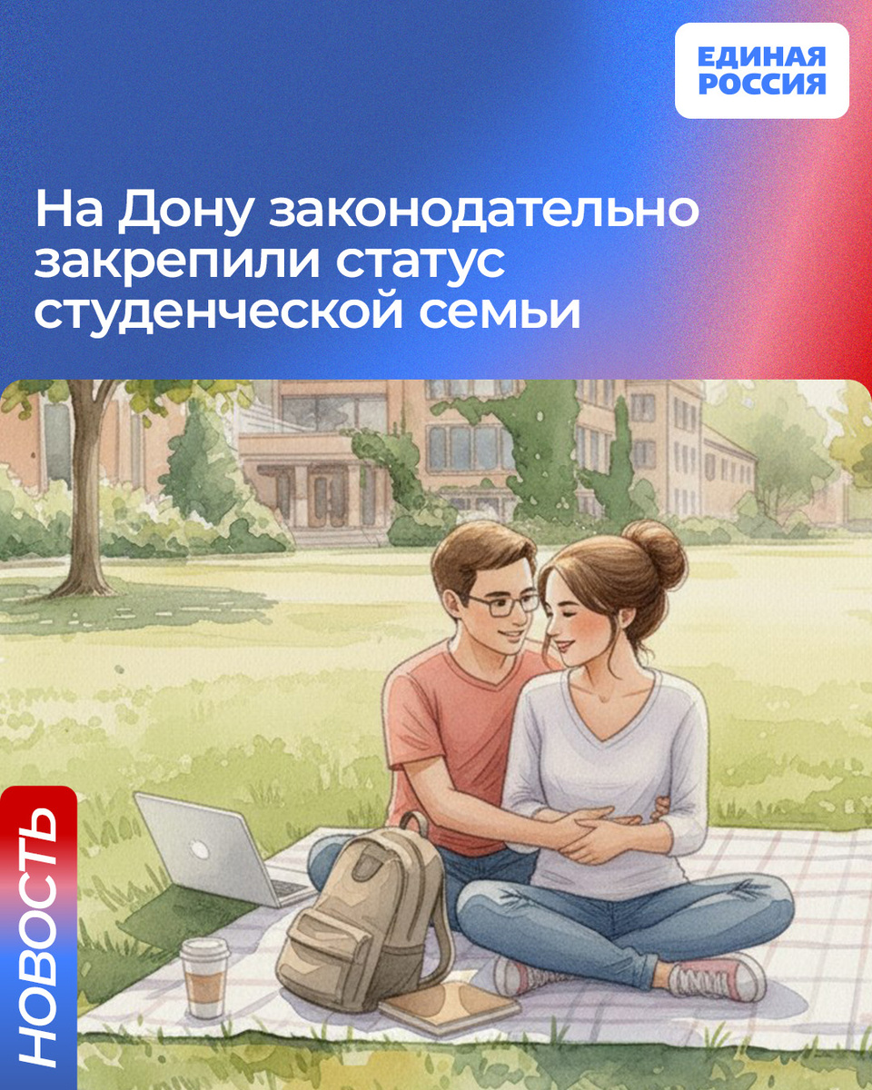 Теперь семьи, где муж и жена учатся в вузе или колледже, будут пользоваться теми же льготами, что и молодые семьи. Статус закрепил донской парламент. ✅ Семьи могут получить социальные выплаты на жилье (30-35 % стоимости), льготную семейную ипотеку, региональный материнский капитал и выплату 300 тысяч рублей за третьего ребенка. «Это союз граждан в возрасте до 35 лет включительно, состоящих в браке и обучающихся в вузах или учреждениях среднего профессионального образования. В эту категорию молодые муж и жена попадают независимо от наличия детей. Уверен, что и наше областное, и федеральное законодательство в ближайшее время пополнится новыми мерами социальной поддержки этой категории молодых семей», - рассказал лидер донской Единой России Александр Ищенко.