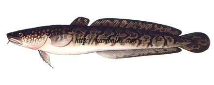 Налим относится к семейству тресковых. Это донная рыба. Образ жизни ночной. Тело налима удлиненное, спереди слегка цилиндрическое, сзади более плоское. Маленькая голова со слегка выпученными глазами. Рот закругленной формы, где челюсти имеют ряд мелких зубов. Рыба имеет усики, которые расположены на нижней губе по центру. Плавник, расположенный на спине двойной, передний плавник короткий, задний немного длиннее и доходит до самого хвоста. Анальные плавники налима длинные. Налим – это рыба черно-зеленого цвета. Чешуя на теле еле заметна, тело покрыто толстым слоем слизи. На фоне черно-зеленого цвета разбросаны темноватые пятна неопределенной формы. Горло и брюшко белое. Вся молодь налима имеет в черный цвет. Налим это рыба выходец из арктических морей, он любит холодную и насыщенную кислородом воду. И, исходя из этого, чаще всего налима можно встретить в ямах или в местах с густой растительностью. Дно рек в таких местах, как правило, с илистыми отложениями, но твердое. Налим предпочита