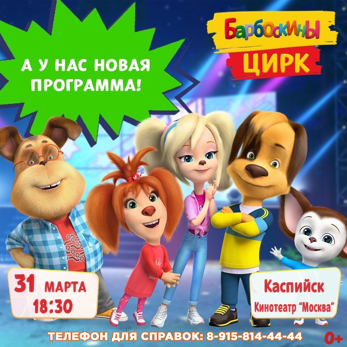 ! Отправляйтесь всей семьей на лицензионное эстрадно-цирковое шоу ростовых кукол «Барбоскины»❗️0+ 31 марта в 18:30 г. Каспийск кинотеатр «Москва», ул. Халилова, дом 12 А Вас ждут яркие костюмы и декорации, цирковые и иллюзионные трюки, трехметровые пневмороботы, лазерная анимация и интерактив со зрителями. Продолжительность программы 1 час 10 минут. Стоимость билетов: от 600 до 1100 руб. Детям до 4-х лет бесплатно 1,2,3 годика (при наличии билета у взрослого, без предоставления отдельного места, бесплатно проходит один ребенок до 4 лет) Купить билеты можно на сайте барбоскиныцирк.рф Телефон для справок: 8-915-814-44-44 🎞🎞🎞🎞🎞🎞🎞🎞🎞🎞🎞🎞🎞 #БарбоскиныЦирк #шоуростовыхфигур #цирковоеШоу #крцмосква #каспийск