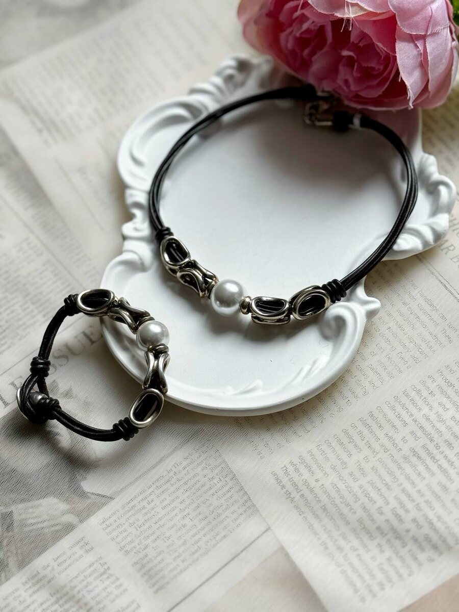 🌗 Контраст фактур всегда притягивает взгляд: гладкий металии и матовая кожа усиливают друг друга. Жемчужная бусина добавляет мягкости и женственности. Добавляя такие украшения к шерсти, льну или хлопку, можно создать образ с глубиной и продуманной простотой.💁♀️ Колье 15600 Браслет 10590 ✨Нажмите для заказа ✉️ Нажмите чтобы задать вопрос