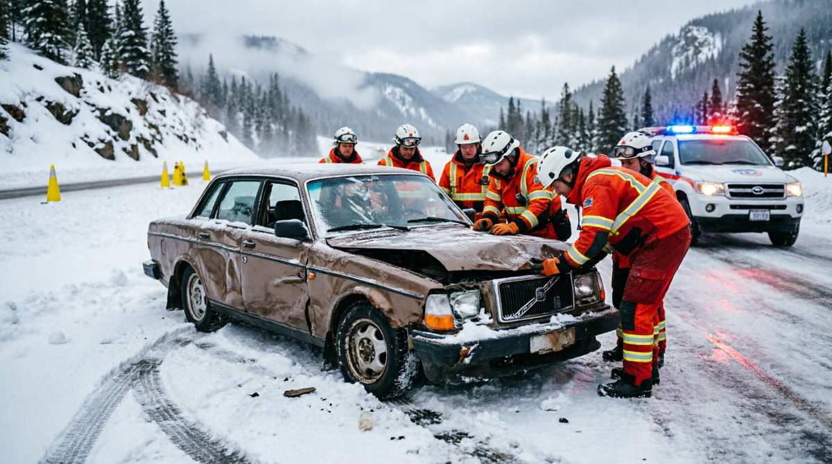 В мире автомобилей есть истории о рекордах скорости, о роскоши и о технологиях. Но есть истории, которые становятся легендами безопасности. Одна из самых невероятных произошла в 1990-х годах в Норвегии (часто эту историю приписывают Швеции, но место действия — суровые скандинавские дороги) и навсегда изменила восприятие бренда Volvo. Это история о человеке, который выжил после падения с обрыва высотой с десятиэтажный дом, находясь внутри обычного седана. Дело было зимой. 43-летний мужчина ехал на своем Volvo 240 по горной дороге в районе фьордов. Погода была паршивой: мокрый снег, гололед и ограниченная видимость. Уставший водитель, возможно, на секунду отвлекся или потерял контроль на скользком повороте. Машина пробилa ограждение и полетела вниз по склону. Но это был не просто склон. Это был обрыв высотой около 30 метров (примерно 10–12 этажей). Автомобиль кувыркался в воздухе, ударялся о камни, ломал деревья и в итоге приземлился на крышу в снежный сугроб у подножия скалы. Когда спас