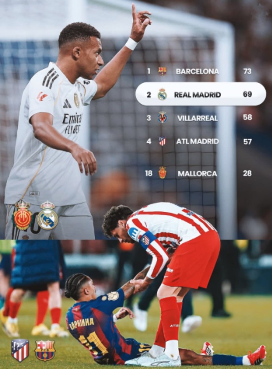 🇪🇸 На этих выходных в Ла Лиге пройдут решающие матчи за чемпионство: «Реал Мадрид» отправится в гости к «Мальорке», а «Атлетико» примет «Барселону». Эта неделя станет определяющей в гонке за титул.