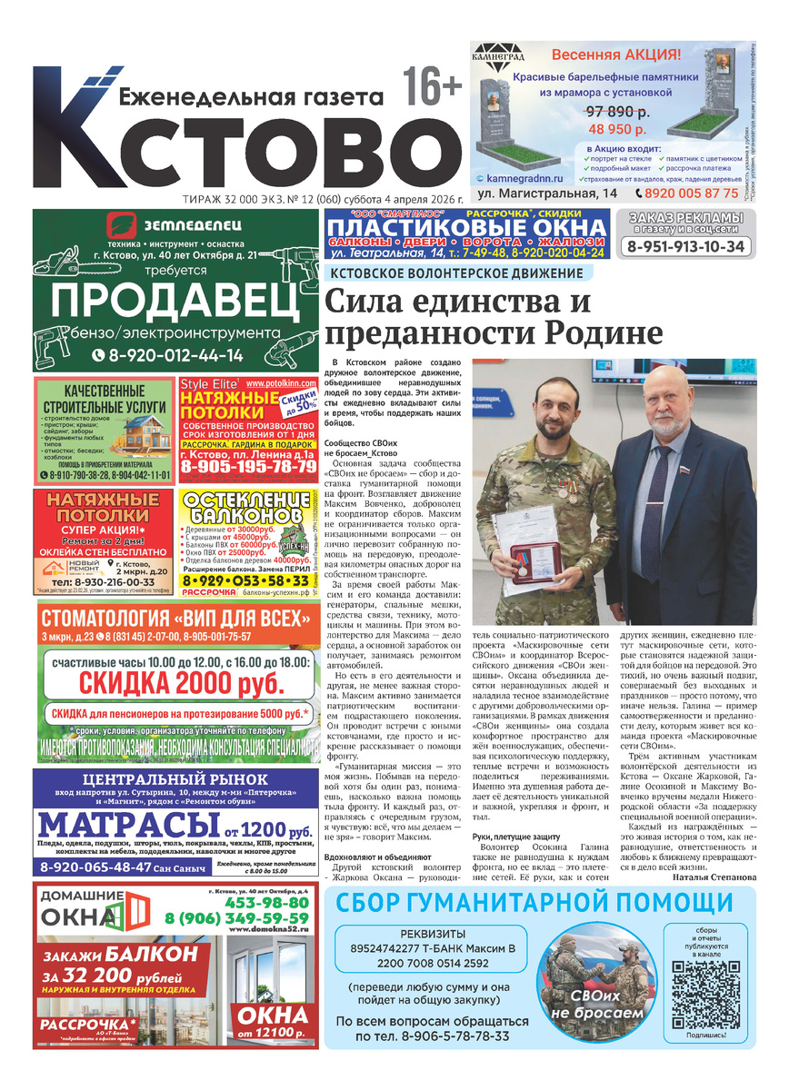 Газета "Кстово" № 60 от 04.04.2026 г.