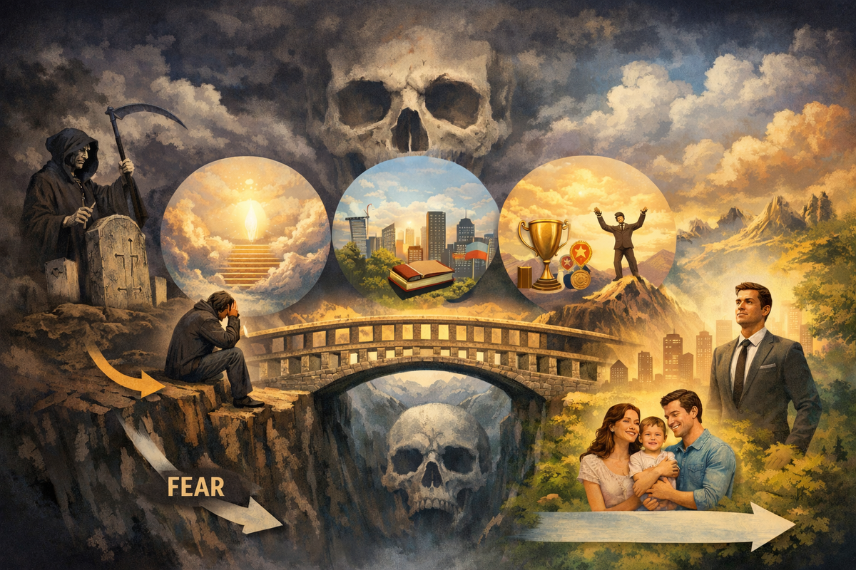 Датский философ Сёрен Кьеркегор в середине девятнадцатого века впервые подробно описал понятие тревоги как особого состояния, связанного с осознанием свободы и неизбежности собственной смерти. Кьеркегор различал страх перед конкретной внешней угрозой и глубинную тревогу перед ничто, которая не имеет конкретного объекта. Эта фундаментальная тревога, по мысли философа, присуща человеку потому, что он одновременно является животным организмом и существом, наделённым самосознанием. В начале двадцатого века Зигмунд Фрейд в работе «Мы и смерть» 1915 года утверждал, что бессознательное не знает понятия собственной смерти и не способно его представить. Фрейд полагал, что человеческое поведение в первую очередь управляется сексуальными и агрессивными влечениями, а страх смерти является производным от страха кастрации или страха потери объекта любви. Только в поздних работах 1920-х годов Фрейд ввёл понятие Танатоса — влечения к смерти — как врождённого инстинкта, направленного на возвращение организма к неорганическому состоянию. Этот дуализм Эроса и Танатоса стал важным, хотя и спорным, вкладом в понимание роли смерти в психике.