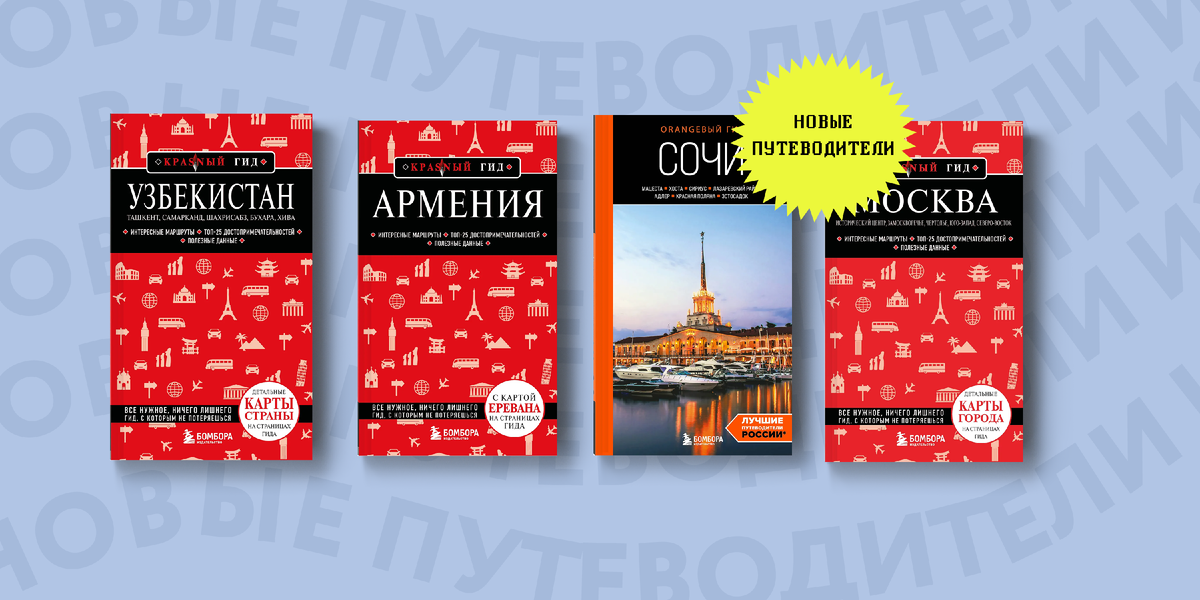 Москва, Сочи, Дагестан, Узбекистан и Армения А вы знали, что в Узбекистане хранится один из самых древних Коранов в мире? По одной из версий, его привез его туда Тамерлан. Коран хранится в комплексе Хазрати Имам в Ташкенте. Путешествовать по таким местам — бесценно. Собрали для вас путеводители серий «Красный гид» и «Оранжевый гид» с необычными идеями для поездок и самыми интересными местами России, Узбекистана и Армении. Весной и летом столица нашей Родины — идеальное место для городского отпуска: зеленые парки, красивые улицы, архитектурная эклектика и масса развлечений для больших и маленьких на любой вкус и кошелек. Чтобы гулять пешком по городу было еще интереснее, заручитесь поддержкой «Красного гида». В нем собраны топ-25 главных достопримечательностей столицы и подсказки, как сделать день, два или неделю в Москве незабываемыми. Красная поляна — визитная карточка региона: чистый горный воздух, минеральные источники, живописные туристические маршруты приготовил Кавказский заповед