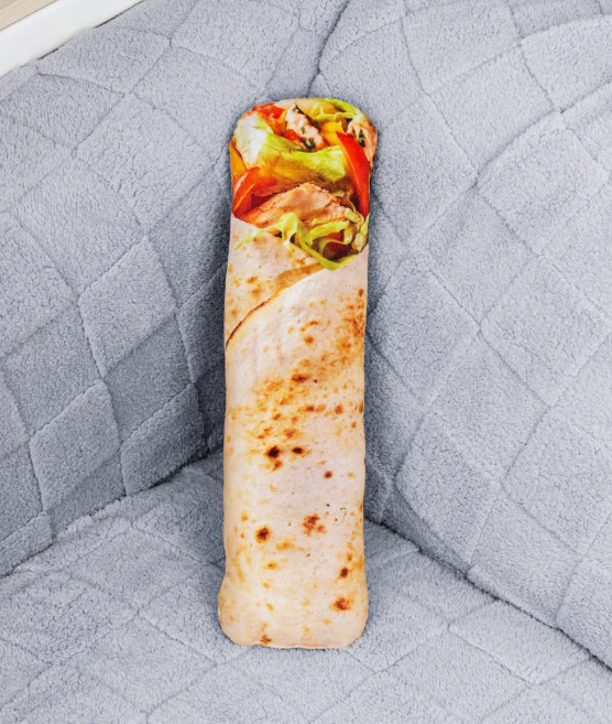 Это не просто подушка — она выглядит настолько реалистично, что сначала кажется, будто кто-то реально оставил шаурму. И да, гости 100% будут брать её в руки и рассматривать 😏