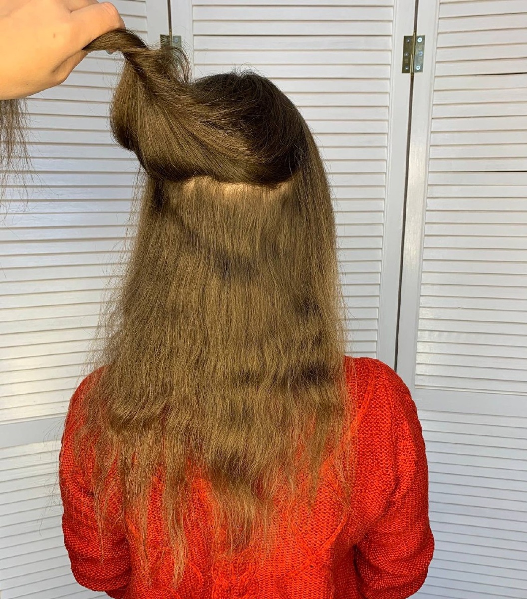 С волос смыты все пленки от уходовых средств. Катя ходит раз в 4-5 месяцев. Длина 🔥 А как сказала Катя: «фасад подпортился» 🤪 Отрастают кудряшки у лица и портят весь вид.