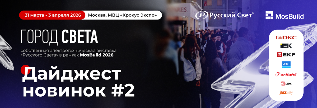 С 31 марта по 3 апреля в МВЦ «Крокус Экспо» компания «Русский Свет» представила на выставке MosBuild 2026 специализированную экспозицию новинок и флагманских линеек электротехники и светотехники. В заключительной подборке — решения от производителей, чья продукция была показана в экспозиции «Город Света».