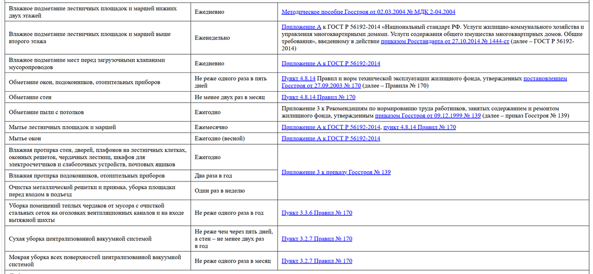 Если НПА или инструкция по эксплуатации не регламентируют порядок выполнения работ, исполнитель должен разработать свой порядок, ознакомить с ним собственников и включить в договор на оказание услуг содержания (п. 4.9 ГОСТ Р 56192-2014). О том, как часто нужно убирать придомовую территорию, читайте в рекомендации «Как содержать придомовую территорию».
