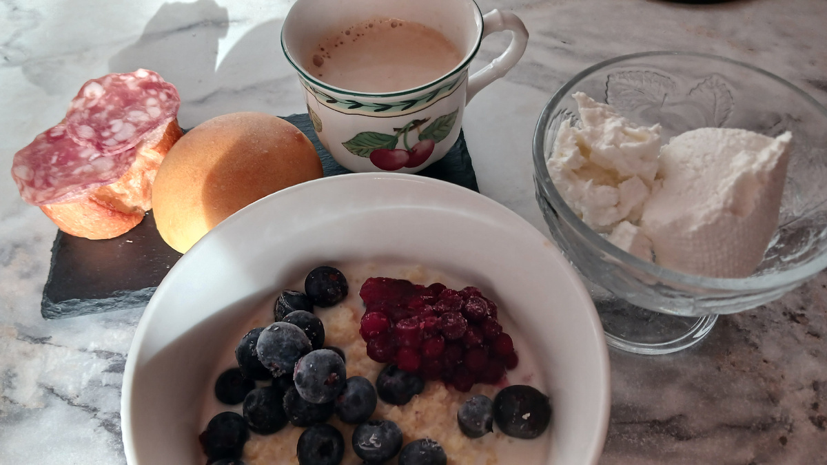 В апреле питаемся на 258 руб в день на человека. Сумма в месяц на питание - 7 750 руб на одного и 15 500 руб на двоих. На завтрак сегодня пшенная каша с ягодами и пластовой творог. К чашке кофе вкусные дополнения - пирожок с черникой и маленький бутерброд с сальчичоном на кусочке багета. Обед, как и вчера - борщ и хачапури с сыром четук Потом пила кофе с пирожком с черникой. На ужин был плов с индейкой. К плову салат фриллис и огурцы Меню год назад Девушки, в комментариях к сегодняшней статье многие просят поделиться артикулом на кастрюлю для мультиварки. Мне пока делиться нечем. Кастрюлю только заказала, она еще едет. Предлагать вам кота в мешке - не в моих правилах. Давайте, как приедет, посмотрю на нее и тогда обязательно покажу вам. Немножко терпения! Сама очень ее жду 😇