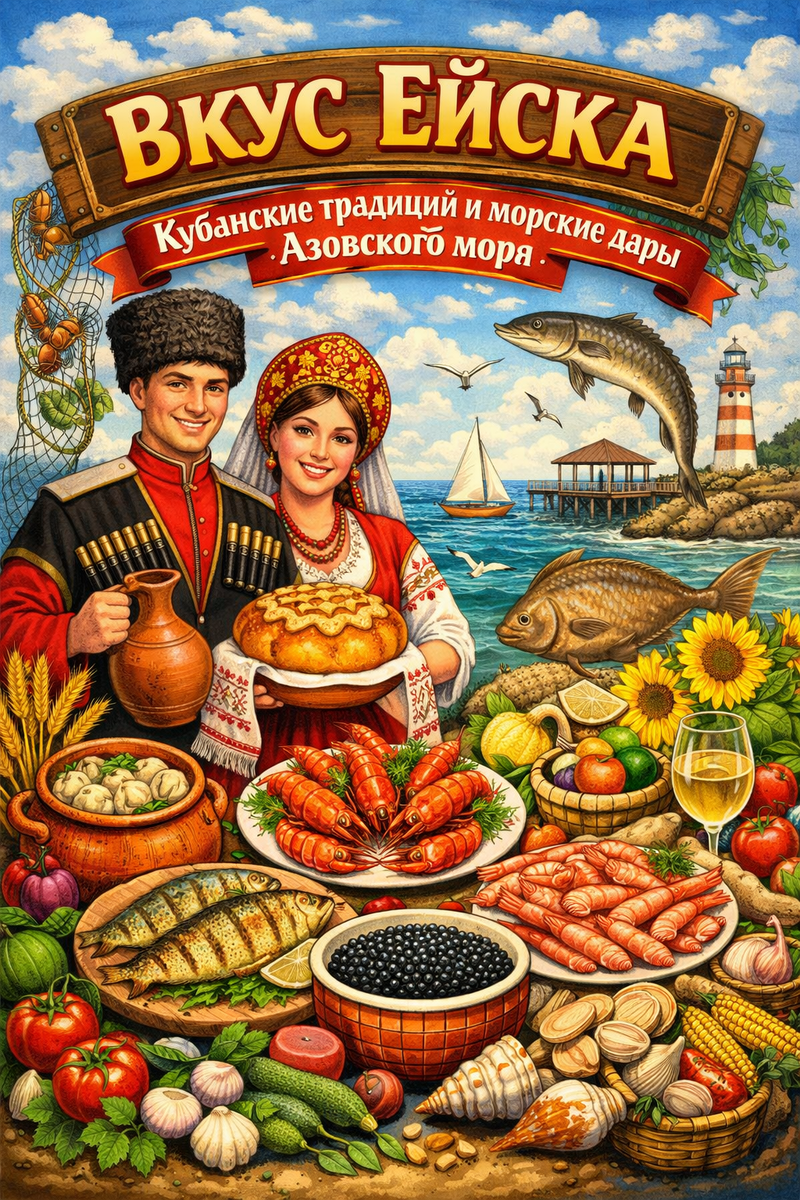 Ейск — маленький южный город, где кухня такая же тёплая и душевная, как азовский ветер. Здесь нет сложных рецептов «из мишленовских ресторанов» — только то, что растёт на кубанских огородах, ловится в море и готовится по-казацки: щедро, просто и с любовью. Кухня Ейска — это классическая кубанская с сильным влиянием донских казаков: обилие овощей, свежая рыба, домашние заготовки и большие семейные столы.