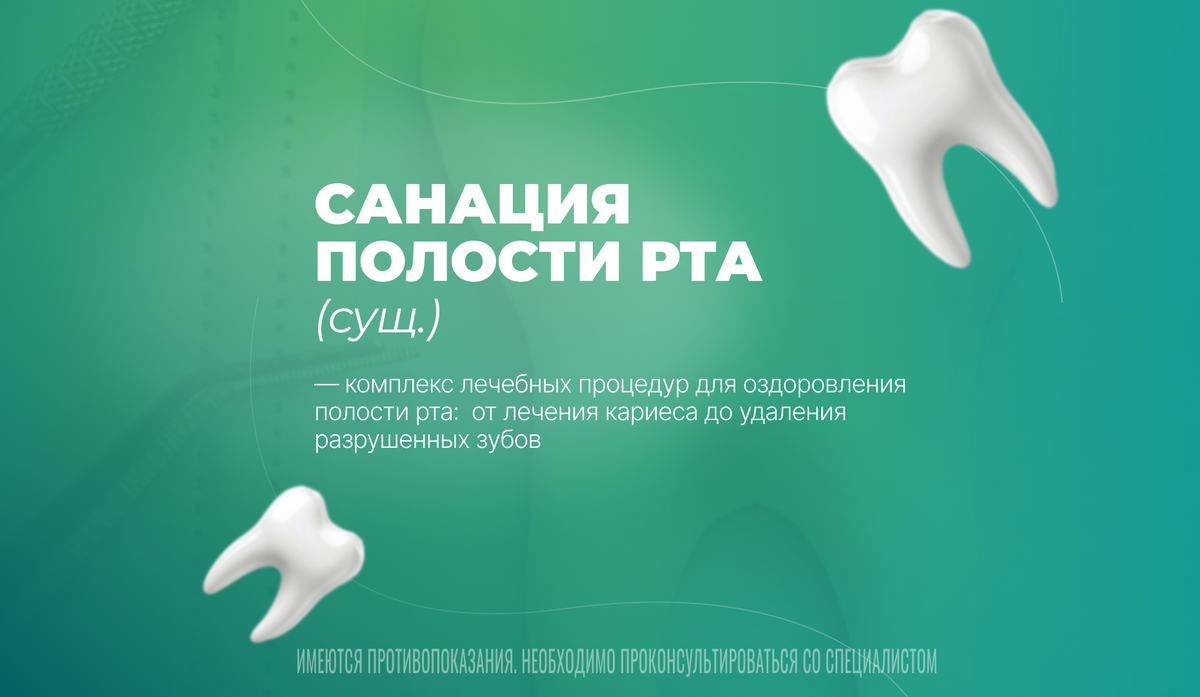 Слово происходит от латинского sanatio, что буквально переводится как «оздоровление». В стоматологической практике это комплекс мероприятий, цель которых — привести рот в полностью здоровое состояние.