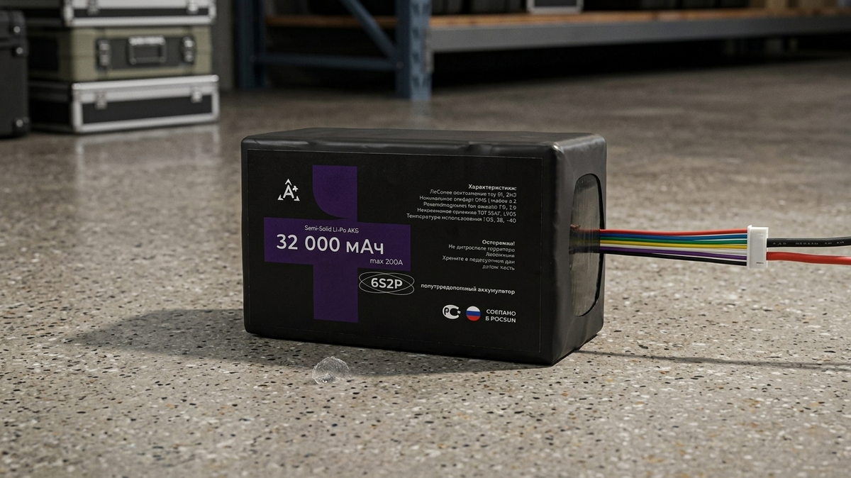 Полутвердотельные аккумуляторы постепенно выходят из лабораторий в реальные проекты, и один из примеров — батарея 32 000 мА·ч 6S2P Semi-Solid для высокотоковых систем. Это уже не эксперимент, а готовое промышленное решение с упором на надёжность и мощность. Полутвердотельный Li-Ion — это промежуточный шаг между классическими литий-ионными и полностью твердотельными батареями. В такой химии сохраняется литиевая основа, но электролит частично или полностью загущён, за счёт чего снижается риск утечек и повышается стабильность работы ячеек. В случае RUNPOWER используется Li-Ion Semi-solid с удельной энергоёмкостью до 360 Вт·ч/кг, что заметно выше, чем у массовых элементов в стандартном исполнении. Это позволяет получить больше энергии в том же объёме или весе и не жертвовать мощностью, что важно для автономных систем и мобильного оборудования. Конкретная модель 6S2P — это батарейный блок из последовательно и параллельно соединённых ячеек: 6 последовательно (6S) и 2 параллельно (2P). Номин