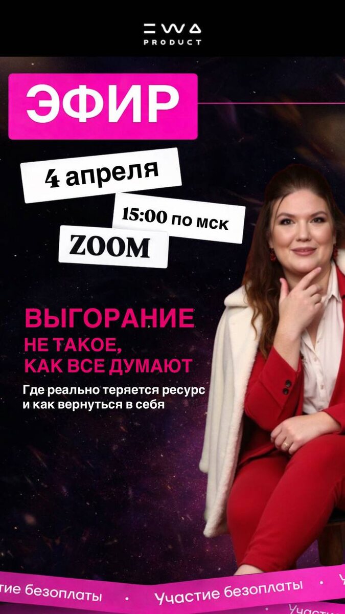 А ЭТО НЕ ОНО. ЭФИР 04.04 | 15:00 МСК Сейчас почти каждый говорит: «я выгорела». Но давай честно — в большинстве случаев это не выгорание. Это состояние, где: — нет ресурса — перегружена психика — тело не вывозит — и ты пытаешься «собрать себя» через силу И вот здесь начинается ошибка ⚡️ Ты начинаешь: копаться в себе, искать причины, давить, «брать себя в руки» А становится только хуже. На эфире разберём: — где реальное выгорание, а где нет — почему ты теряешь ресурс — и что делать, чтобы не проваливаться в это состояние снова Без мотивации. Без «соберись». С пониманием, как это работает 🔑 Если чувствуешь, что «не тянешь» — приходи. Ссылку на зум пришлю лично, переходи https://t.me/m/KBQwEeZEN2Iy