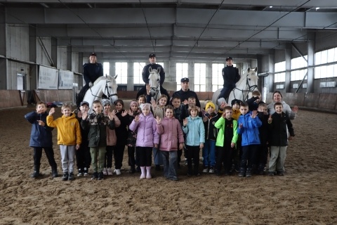 Экскурсию провели на базе конноспортивного клуба, где размещается взвод патрульно-постовой службы УМВД по Нижнему Новгороду. Детям показали, как устроена служба, и объяснили правила безопасности при общении с лошадьми.