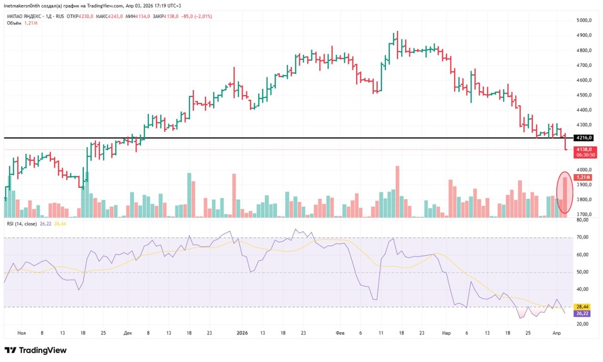 Вот этот повышенный объем торгов в акциях Яндекса, плюс пробитие очень сильного и долгого сопротивления, плюс еще более глубокий уход в
