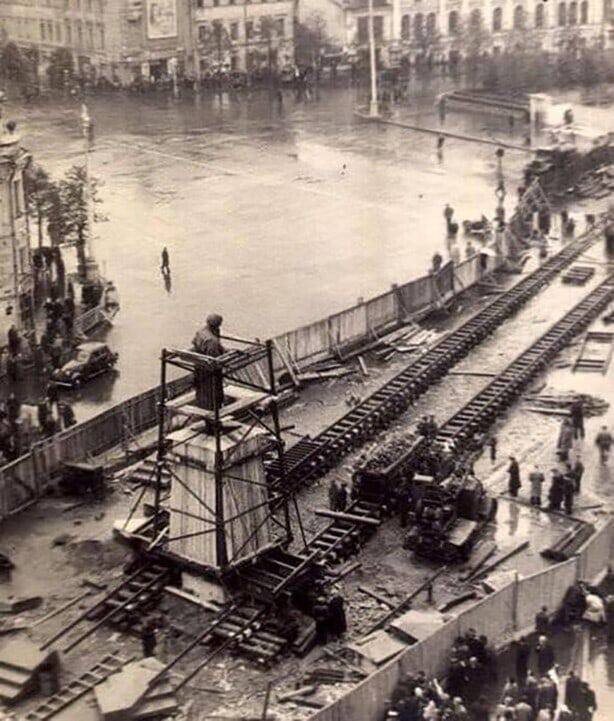 Переезд памятника Пушкину с Тверского бульвара на другую сторону площади, 1950