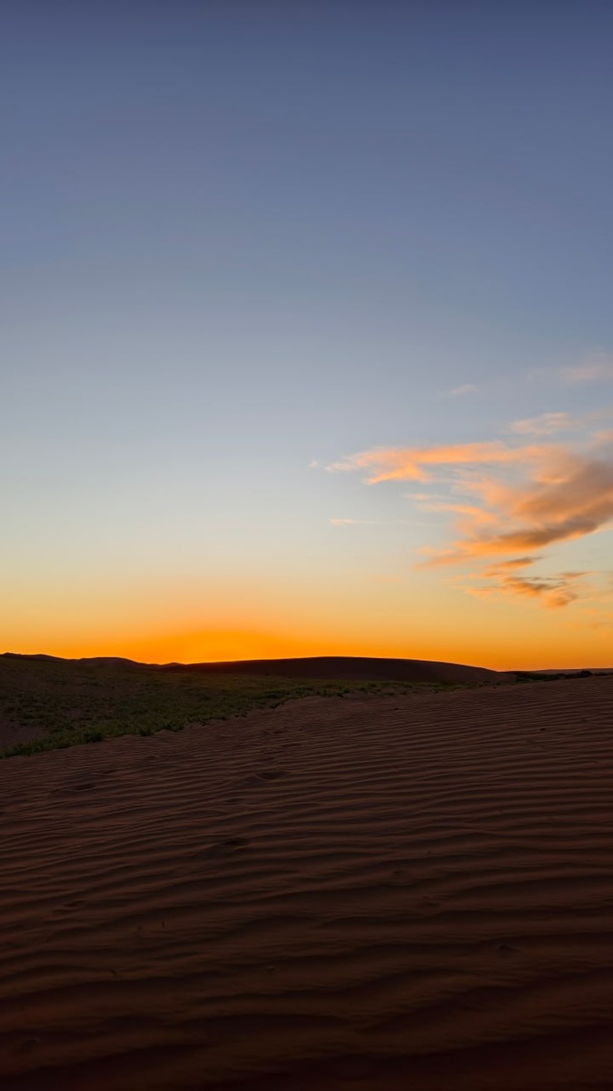 : 🔥🔥🔥🔥🔥 Почти все сказали: «верблюд». И про птичьи следы тоже. И даже сланцы - угадали. 😎 🐫 Да, верблюд там был. Бархан Хонгорын-Элс, где сделаны фотографии - самая большая песочница Пустыня Гоби. Пески здесь поют, ветер рисует линии, а ночь оставляет на песке настоящие истории. И вот эти следы - это не просто отпечатки. Это ночная жизнь пустыни, которую днём почти не видно. По песку прошли: 🐦 птица Песчаная куница Палласа - лёгкая, как тень 🐱 Барханная кошка или 🦊 Корсак - маленькие хищники с большими секретами 🦘 тушканчики - как будто кто-то прыгал по песку пружинкой 🦎 ящерицы, оставляющие тонкие зигзаги 🦔 ежи 🐀 мыши-песчанки - целая скрытая цивилизация А где-то рядом, возможно: 🕷 пауки… 🦂 скорпионы… 🐍 змеи... 🐻 Да, в этих местах живут и медведи 🐺 и даже волки. Но их следов мы, к счастью (или к сожалению?), не встретили. Вот стоишь утром. Перед тобой - идеальный, нетронутый бархан. А на нём - чужие маршруты. Без навигатора. Без карт. Просто жизнь, котора