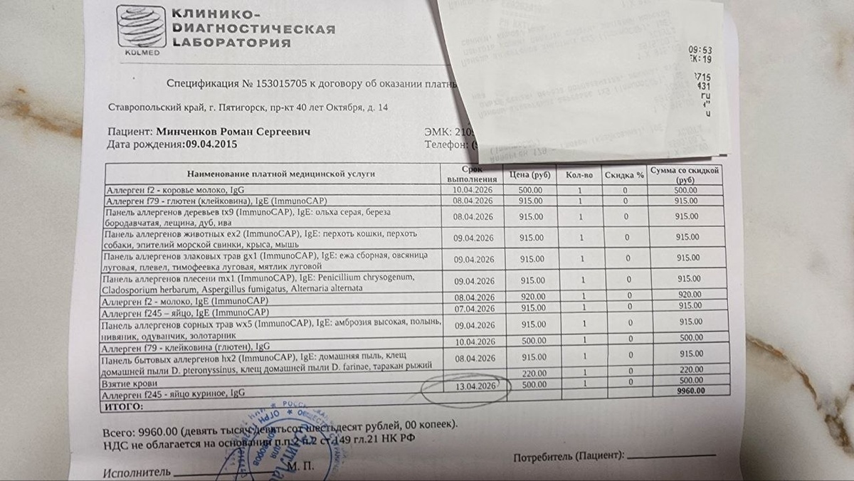 Сегодня с Ромой наконец-то сдали кровь на аллергопробы, цена вопроса почти 10тыс🙈, потом к аллергологу в Ставрополь