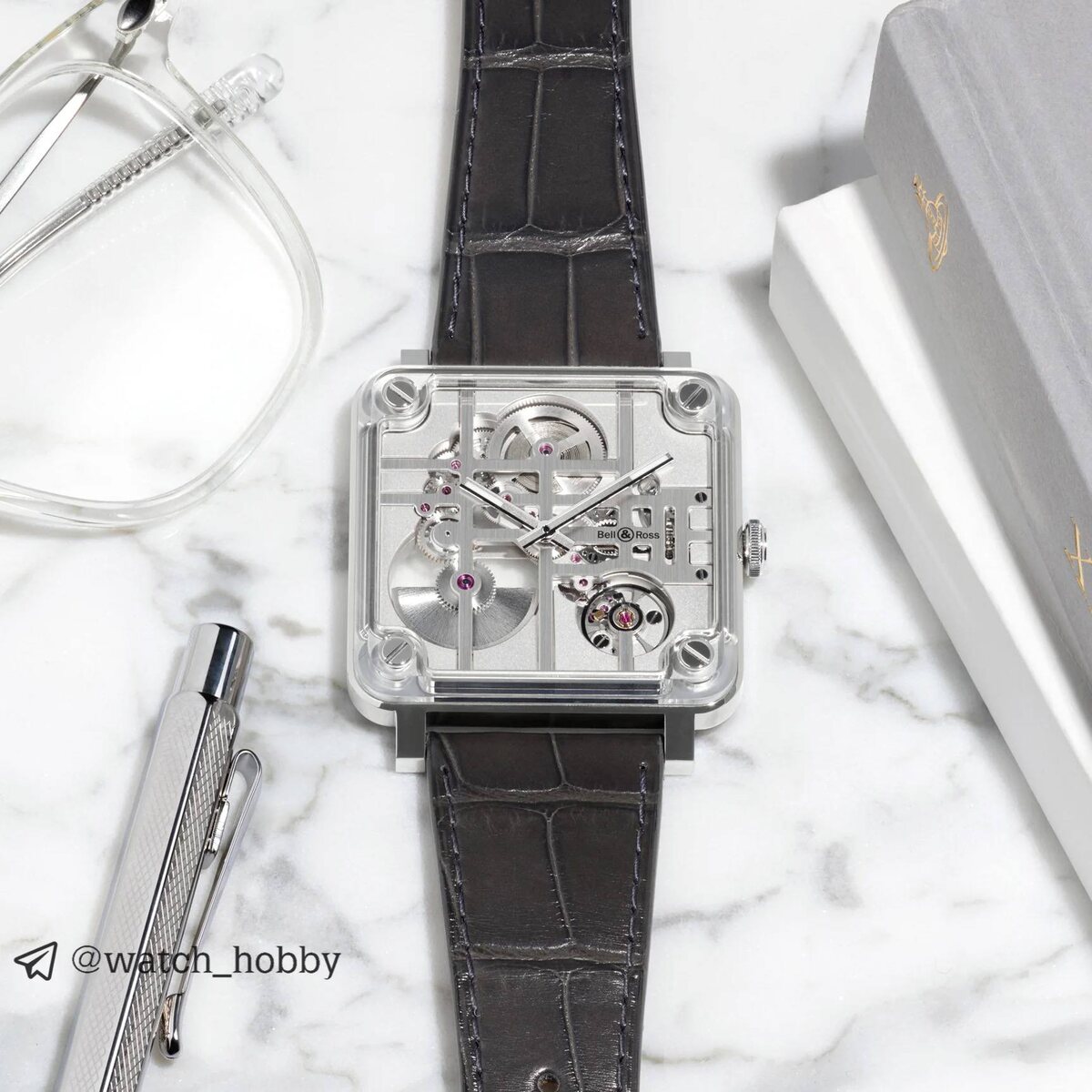 Культовый квадратный корпус обрел новый вид, но все также остается узнаваемым. И это не просто дизайн - это часть конструкции, в которой механизм и корпус являются одним целым. Что с характеристиками: - Корпус из стали - Ремешок из кожи - Уникальный прозрачный циферблат - Размер корпуса: 40 мм - Высота корпуса: 9 мм - Сатиновая и зеркальная полировка - Сапфировое стекло - Водозащита 50 метров - Автоматический калибр BR-CAL. 390 с запасом хода в 48 часов Изначально, честно говоря, я не понял. А потом как понял… Дело в том, что компания уже выпускала подобные часы, мы на них смотрели вот в этом посте, но изменения все же есть - в новинке нет турбийона, тираж больше в 4 раза, стоимость меньше в 5 раз. Но самое главное то, что калибр остался свой. Модель лишена усложнений, только две стрелки, прозрачный корпус и микро-ротор. Очень красиво, за работой можно наблюдать как с лицевой, так и задней стороны. Лимит: 99 экземпляров. Стоимость: 22.000 евро или 2.100.000 рублей 💰, ориентировочн
