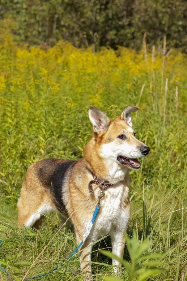 Ногинский муниципальный приют для животных! Куся, молодая, энергичная леди 7 лет, здорова, привита, стерилизованная, среднего размера. Своим окрасом напоминает овчарку благородных дворянских кровей.