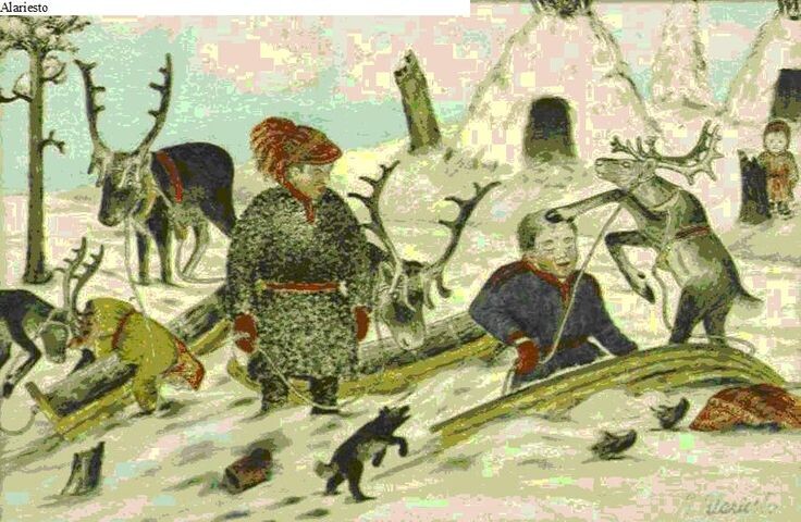 Жили древние саами близ берега моря. На берегу реки Вороньей было саамское село. Узнали саами в селе, что скоро придут к ним немирные шведы. В селе у саами, был один старик по прозвищу "Старшая голова". Вот этот старик и говорит: - Теперь нам нужно всем бежать в другое место, а то шведы-захватчики узнают, что мы здесь живем, придут и причинят много горя. Нам нужно собрать сто кереж (повозок) и сто быков. Я же останусь здесь в селе ждать непрошеных гостей, и когда они придут, сделаю так, что один их всех перехитрю. Собрали саами ..сто кереж и сто быков, оставили все старику, а сами переехали подальше, в другое село. Старик же остался один в этом селе и стал немирных шведов ждать. Прошло некоторое время, и увидел старик множество оленей. Это шла шведская сила. Вот пришли захватчики и спрашивают старика: - Почему один живешь? А он и отвечает: - Подождите, я пойду сейчас за своим народом. Их главный начальник говорит: - Отведи нас на то место, где новое село. Старик отвечает: - Я отведу ва