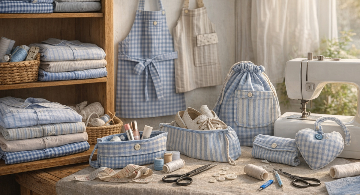 Знакомая картина: на нижней полке шкафа — стопка рубашек. Муж их уже не носит. Выбросить жалко. Отдать — никому не надо.Висеть будут годами. Собирать пыль. Занимать место.А ведь каждая такая рубашка — это идеальный материал. Ткань уже выстирана. Манжеты и воротник — готовые декоративные элементы. Пуговицы — вообще золото. «Старые рубашки мужа превращаю в фартуки и косметички», — эта фраза звучит почти как магическое заклинание. Потому что на выходе получаются вещи, которые стыдно назвать самоделкой. Аккуратные швы. Фирменные детали. И ни намёка на «колхоз». Секрет — в правильных выкройках. И в смелости. Рубашечная ткань не сыплется так сильно, как многие боятся. Хлопок и поплин держат край. А если пройтись зигзагом на обычной швейной машинке — вообще вечность. Екатерина Сергеевна Рыбакова, блогер по апсайклингу, мама двоих детей: «Я три года назад случайно разрезала старую рубашку мужа. Хотела сделать фартук для дочки. Получилось так здорово, что теперь не покупаю ткань для мелких прое