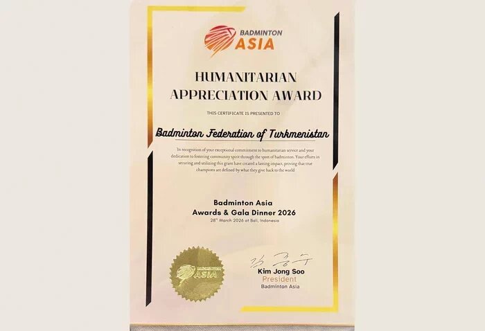 Почетный сертификат, ставший символом эффективности проводимой работы, вручил лично президент Азиатской конфедерации бадминтона Ким Чжон Су Деятельность Федерации бадминтона Туркменистана получила высокую оценку на международном уровне. Радостная весть пришла с острова Бали, где 28 марта под эгидой Азиатской конфедерации бадминтона состоялось торжественное мероприятие, подтвердившее авторитет туркменской спортивной организации на континентальной арене. В ходе церемонии Федерация бадминтона Туркменистана была удостоена специального сертификата Азиатской конфедерации. Высокая награда вручена за приверженность гуманитарным ценностям и значимый вклад в развитие общественного духа через популяризацию бадминтона. В официальном документе подчеркивается, что усилия национальной федерации уже приносят ощутимые результаты, играя ключевую роль в подготовке будущих чемпионов мирового уровня. Почетный сертификат, ставший символом эффективности проводимой работы, вручил лично президент Азиатской кон