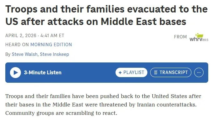 Пентагон начал экстренную эвакуацию 1500 военнослужащих с базы 5-го флота США в Бахрейне. Причины и последствия операции остаются под вопросом. https://brokerlist.info/pentagon-nachal-ekstrennuyu-evakuacziyu-voennosluzhashhih-s-bazy-5-go-flota-ssha-v-bahrejne/ #brokerlist #журнал