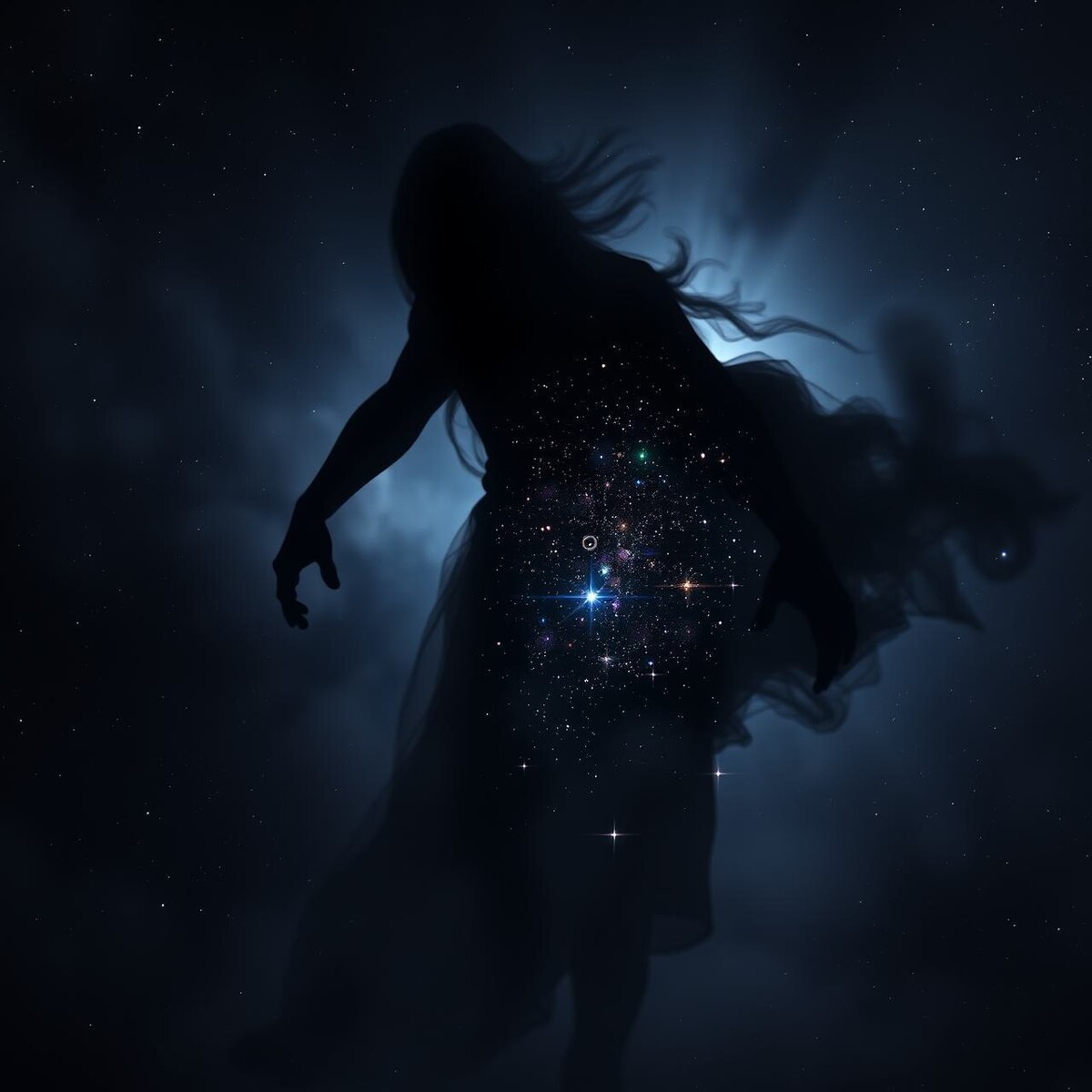 С ужасом оглянулась и волосы зашевелились на затылке: её платье, белое, в кровавых разводах, которое она так и не сняла, сейчас аккуратно висело на плечиках. Оно было абсолютно чистое, алебастровое, без единого пятнышка. Пол — тоже пугал отсутствием алых потёков и лужиц, будто по дому прошла домработница. НО! Сгоревшие свечи так и валялись крошечными огарками рядом с пустой бутылкой коньяка. Сломанные лезвия - тут же. Блестящие, словно, и не пользовался ими никто. А вот на тумбочке, в тяжёлой золотой рамке стояла фотография. Его фотография. С красными глазами и кровавой улыбкой, той самой, которую она рисовала пальцем. Вот только теперь Он смотрел не на солнце. Он смотрел прямо на неё.