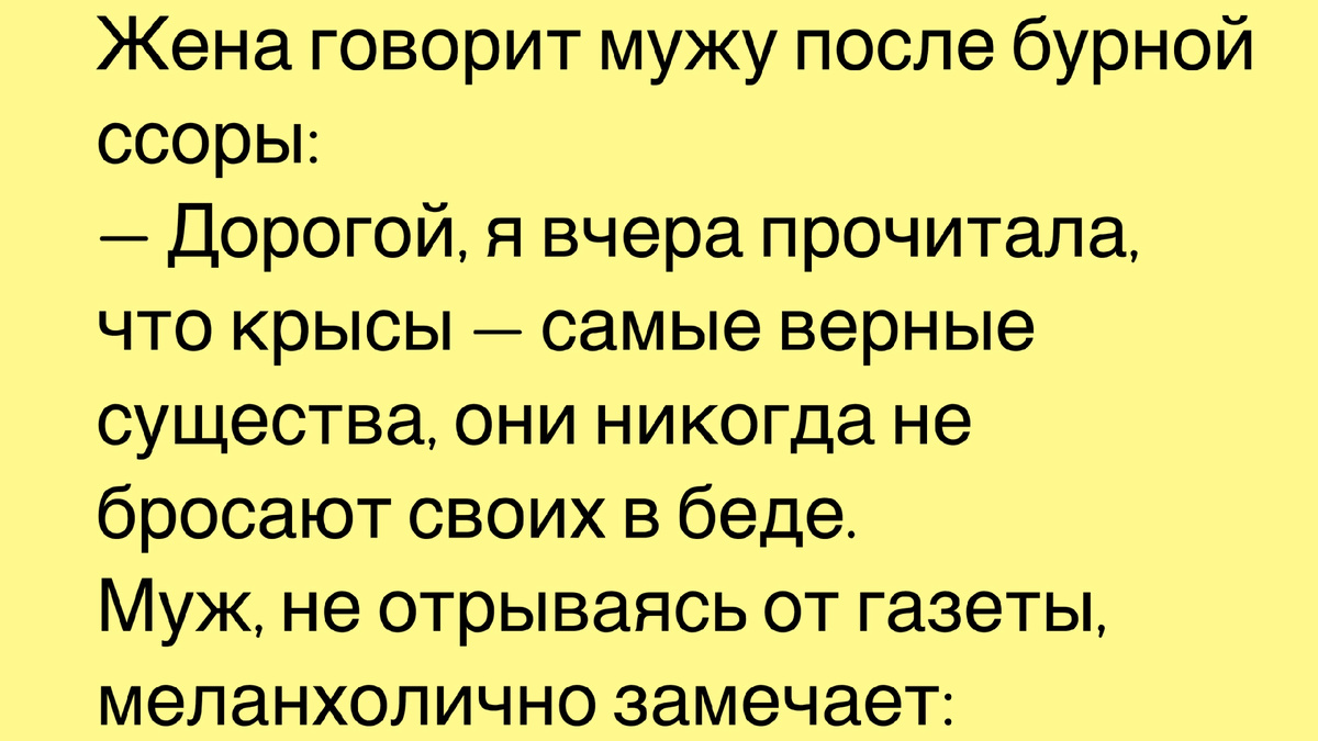 В этом диалоге скрыта глубокая житейская мудрость, которую я решил подчеркнуть. Часто мы путаем преданность с привычкой к хорошему сервису. В человеческом мире крысиное поведение в отношениях проявляется именно в моменты дефицита ресурсов. Пока всё хорошо, мы — стая, мы — семья, мы — команда. Но стоит только подуть ветру перемен, как выясняется, что у каждого в голове свой план эвакуации. Порой удивляешься, как часто наши высокие чувства разбиваются о бытовые вопросы. Ведь даже самый гордый грызун знает: любовь приходит и уходит, а кушать хочется всегда. Поэтому, если Ваша вторая половинка вдруг начала сравнивать Вас с благородными животными, на всякий случай проверьте срок годности продуктов в холодильнике — возможно, это тонкий намек на грядущие перемены в Вашем рационе или жизни.