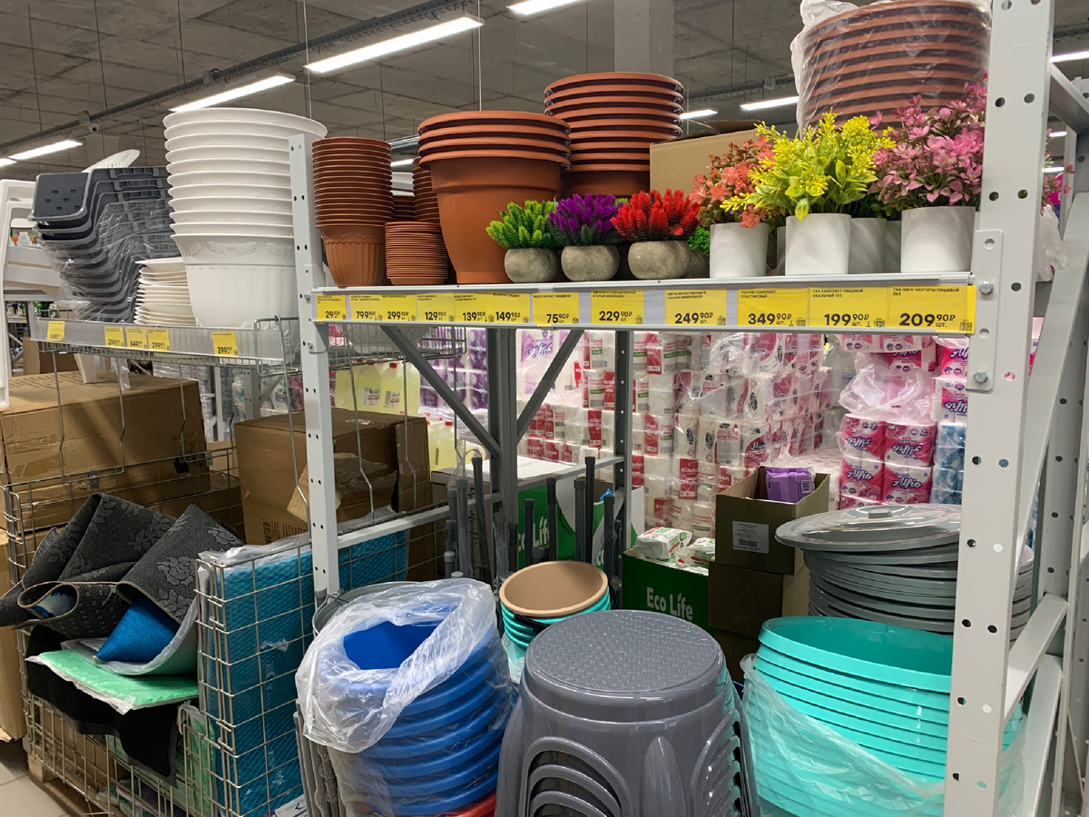 И еще есть искусственные растения в горшочке вот такого вида. Они по 249 рублей. Представлены в ассортименте.