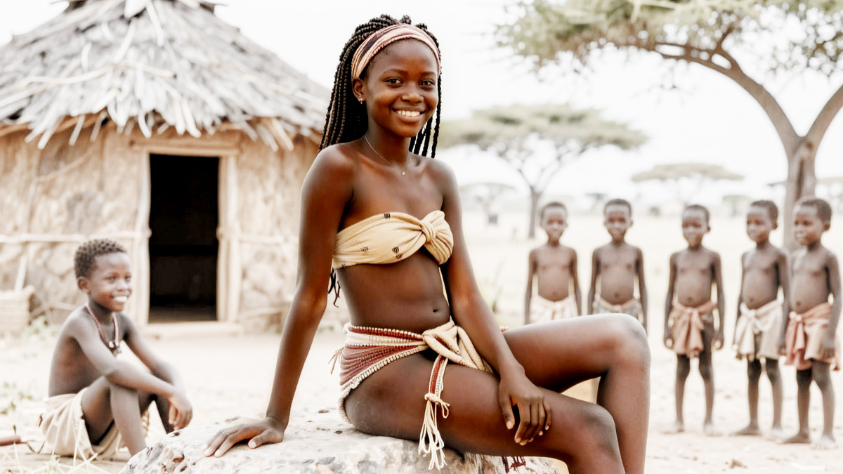 Я стоял на небольшом рынке в центральной Африке, окружённом пальмами и густыми зарослями, и не мог оторвать взгляд от этой юной африканки. Вокруг кипела жизнь: местные жители торговали бананами, кокосами, сахарным тростником, свежей рыбой, овощами и фруктами, которые я даже не мог назвать. Воздух был наполнен ароматами специй, дыма от костров, запахом рыбы и тропических плодов.