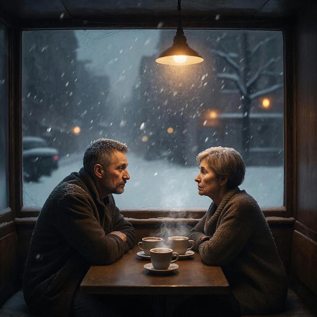 В кофейне играла тихая музыка. Шёл снег за окном. И я вдруг отчётливо понял, что двадцать лет прожил не свою жизнь. Что моя Наташа, занудная и вечно недовольная, — это просто привычка. Что моя работа — это деньги, а не дело. И что я сейчас, в пятьдесят три года, как последний идиот, сижу и смотрю на ту, которую предал по глупости.