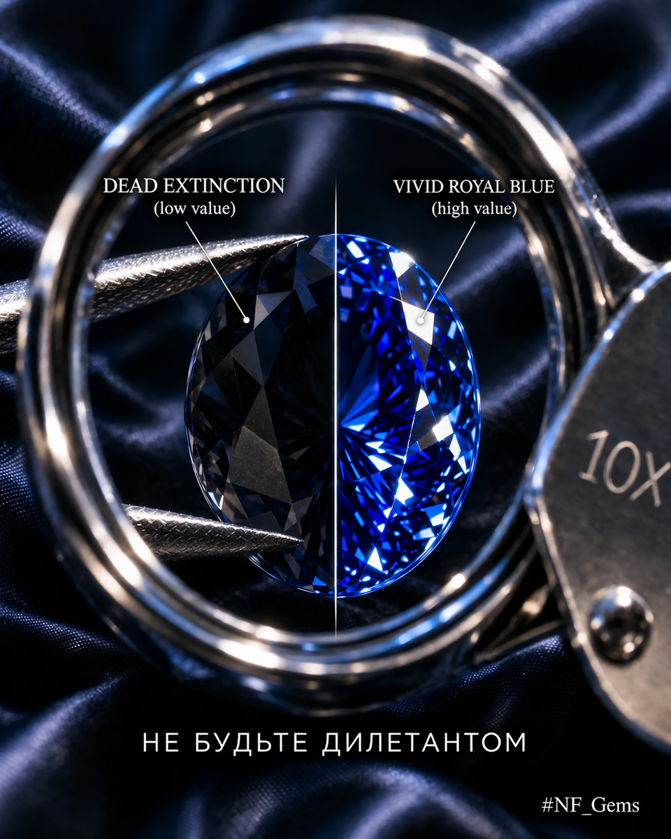 В САПФИРАХ ДИЛЕТАНТ ПЕРЕПЛАЧИВАЕТ В ДЕСЯТКИ РАЗ ПОТОМУ ЧТО СМОТРИТ НА НАЗВАНИЕ И ЦВЕТ, А НЕ НА ЦЕННОСТЬ.