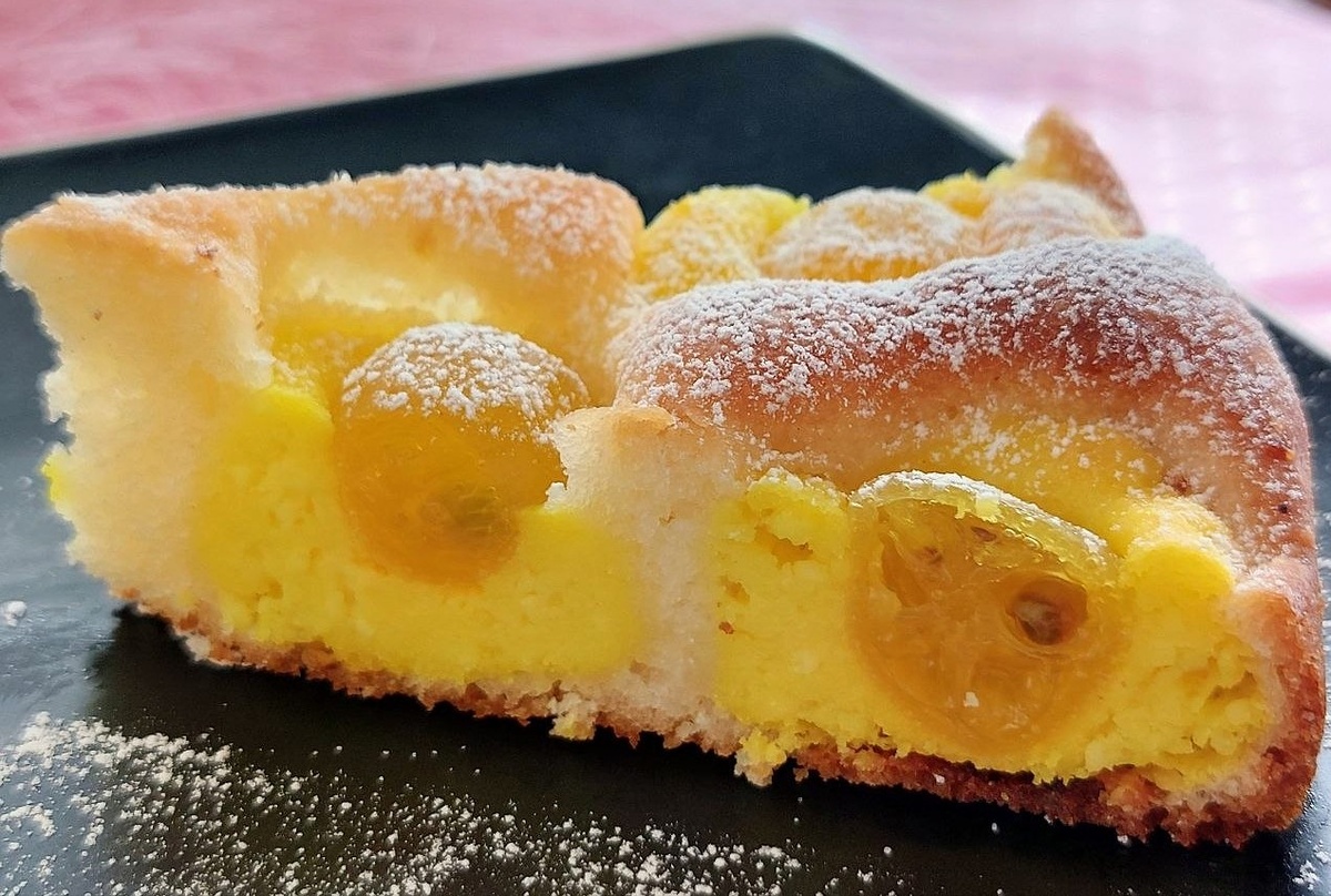 Ароматный, нежный пирог с воздушным мякишем и тонкой хрустящей корочкой. Творожные шарики сохранили форму, а цукат внутри каждого даёт яркий акцент. На разрезе эффектно : светлое тесто, жёлтые «гнёздышки» с янтарным кумкватом.