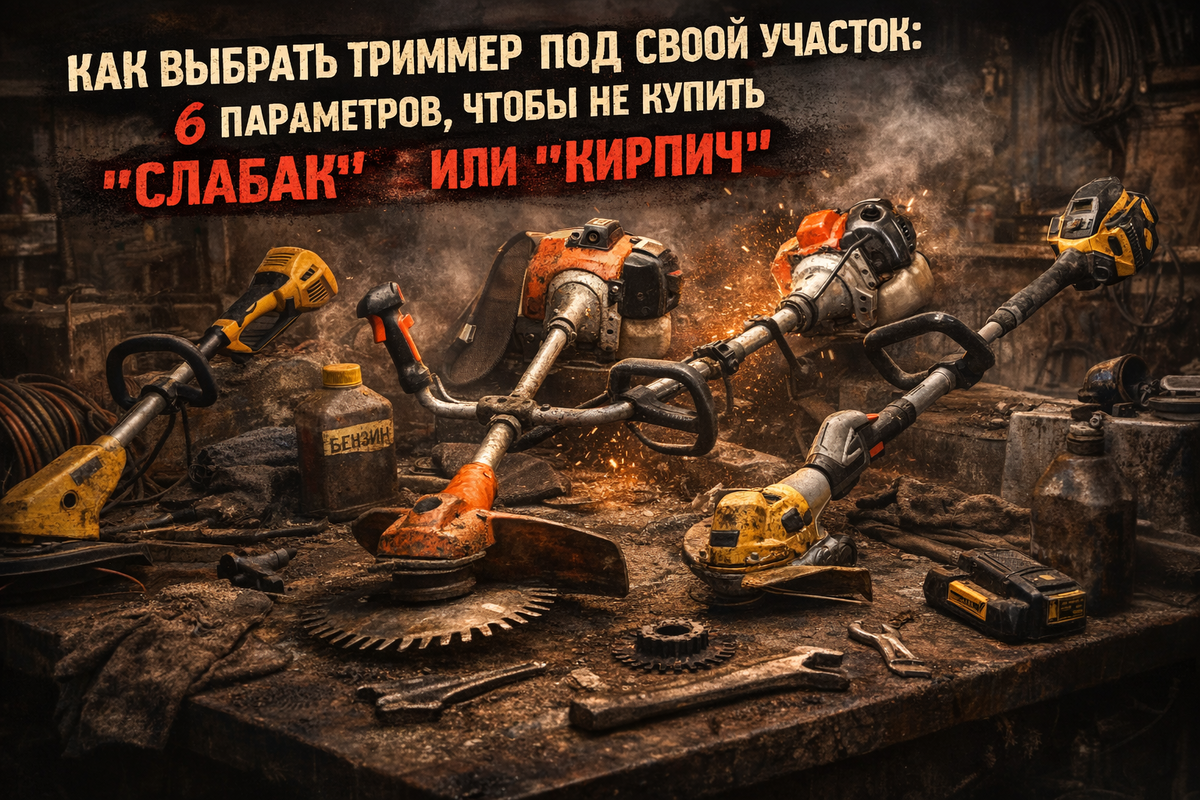 Слушай сюда: щас разжую, как выбрать триммер под свой участок: 6 параметров, чтобы не купить “слабак” или “кирпич”, без маркетинговой лапши. После этого ты поймёшь, какой триммер брать под свои сотки, траву, бурьян и спину. И самое главное — не выкинешь деньги на [mem3]-игрушку, которая сдуется на второй покос.