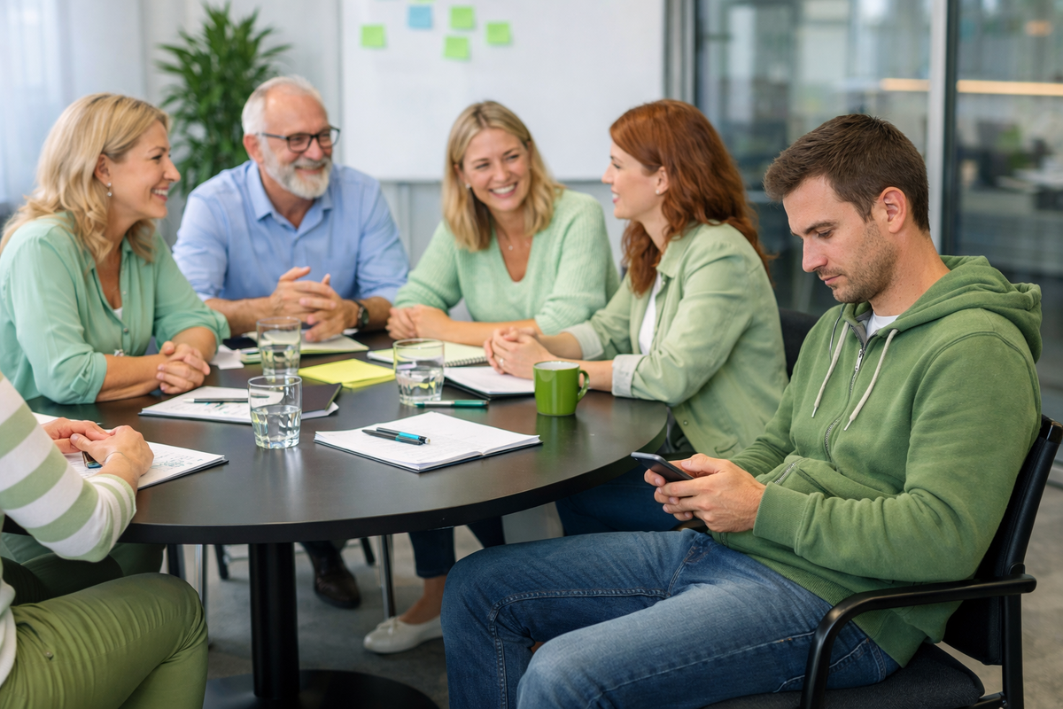 И почти в каждом коллективе есть человек, который не включается в этот процесс до конца. Он не конфликтует, не спорит, не сопротивляется. Он просто не находится «в круге» вместе со всеми. Сначала это выглядит как особенность поведения, но со временем начинает влиять на результат. Такое поведение складывается из небольших, почти незаметных действий. 🧲 Фиксация на одном человеке — участник выбирает «своего» собеседника и взаимодействует только с ним, игнорируя остальных. Это выглядит как безопасная стратегия, но разрушает общее поле. 🪞 Создание микрозоны — физически человек находится в общей группе, но фактически формирует отдельное пространство: садится в стороне, разговаривает вполголоса, не подключается к общему обсуждени